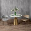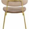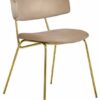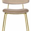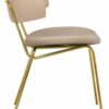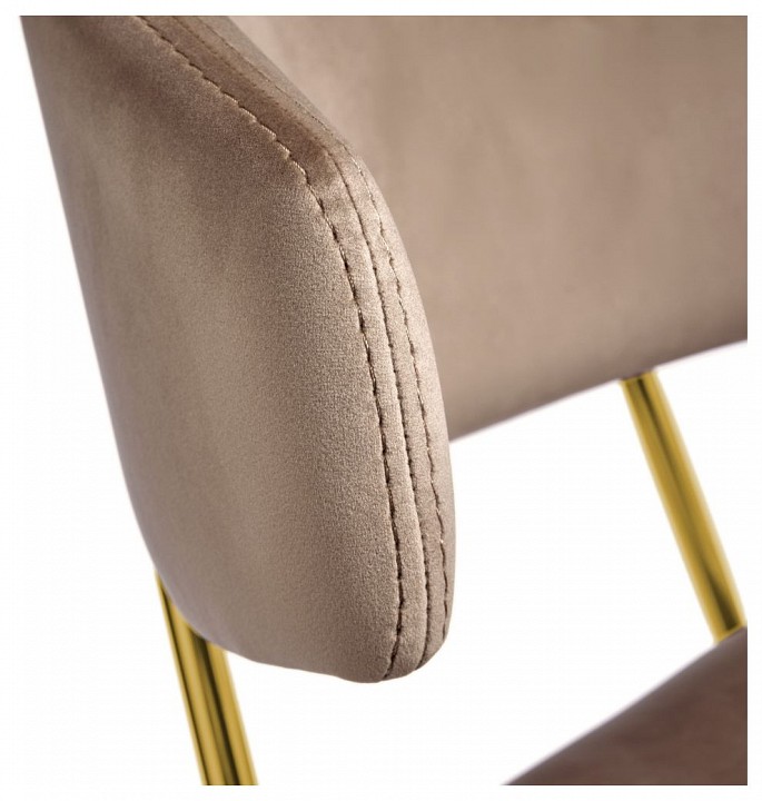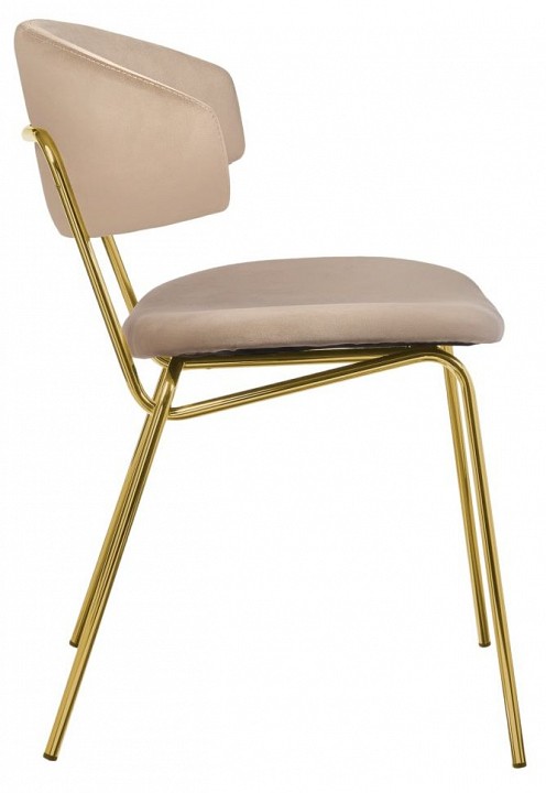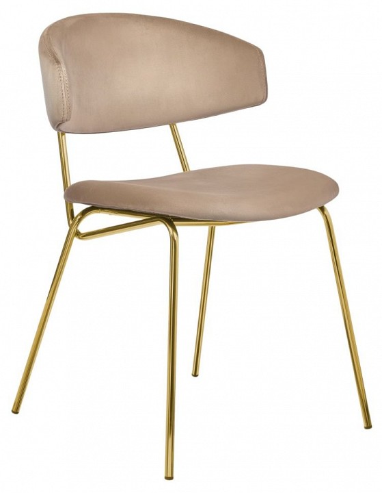Стул обладает необычным и стильным дизайном, который привлечет внимание всех гостей вашего дома. Главная его особенность — необычный каркас, выполненный в виде двух металлических стержней, к которым прикреплены мягкие спинка и сиденье, обитые микровелюром Manhattan. Ткань полностью воплощает в себе современные технологии производства, что отличает ее от других трикотажных велюров. Равномерный ворс лицевой поверхности, благодаря переплетению French terry, подчеркнёт достоинства стула. Такой выбор обивки делает стул комфортным и уютным. Ножки стула выполнены из полированной нержавеющей стали с напылением нитрида титана, что создает эффект натурального золота. Это придает стулу элегантный и роскошный вид. Дизайн данной модели идеально подойдет для современных интерьеров, выполненных в стиле модерн или минимализм. За счет своей лаконичности и комфорта в посадке этот стул станет прекрасным дополнением для гостиной, столовой или спальни.
