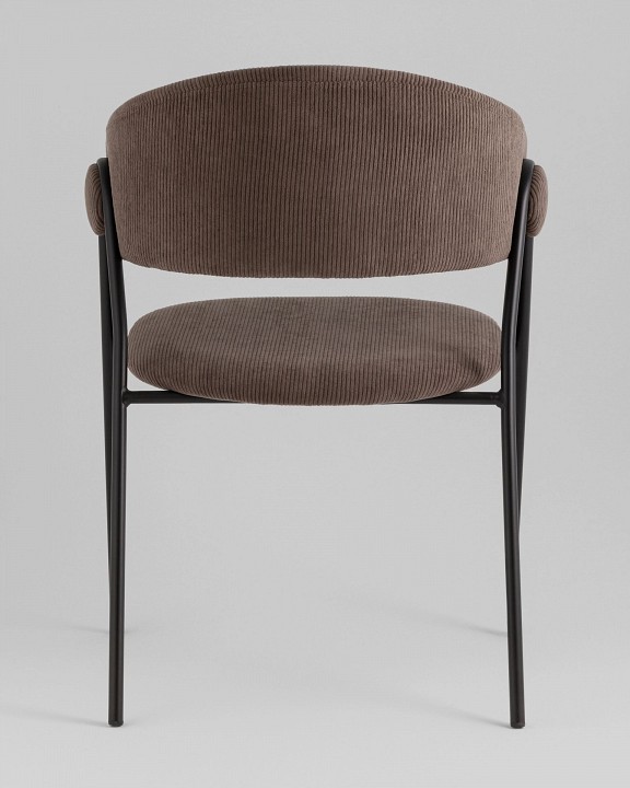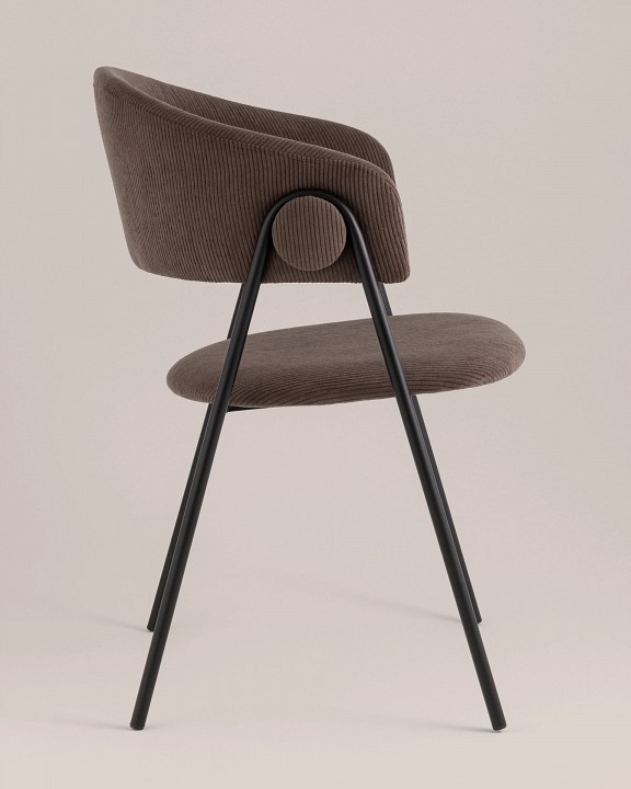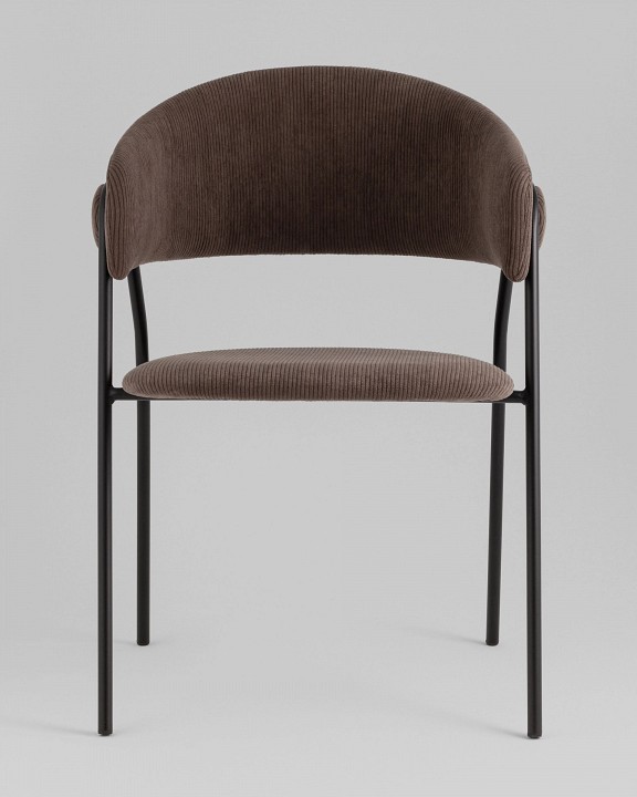 Стильный кухонный стул с оригинальной формой спинки. В качестве обивки используется мягкий вельвет, износостойкий, гигроскопичный материал с приятной на ощупь бархатистой фактурой. Металлический каркас в черном цвете огибает спинку и выступает аккуратным акцентом модели. Широкое сиденье обеспечивает удобную посадку и уют.