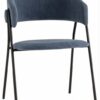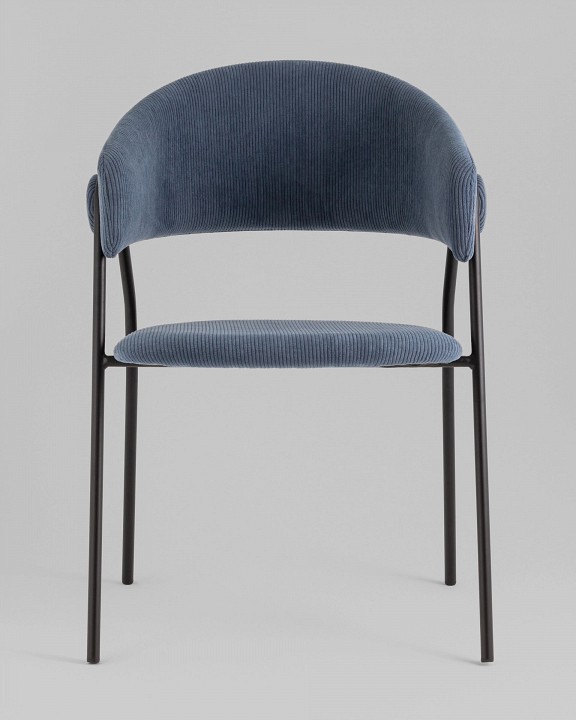 Стильный кухонный стул с оригинальной формой спинки. В качестве обивки используется мягкий вельвет, износостойкий, гигроскопичный материал с приятной на ощупь бархатистой фактурой. Металлический каркас в черном цвете огибает спинку и выступает аккуратным акцентом модели. Широкое сиденье обеспечивает удобную посадку и уют.