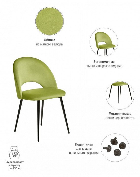 Лаконичный дизайн стула Leo с полукруглой спинкой в велюровой обивке понравится любителям комфорта и уюта. Благодаря сдержанным расцветкам и оригинальному силуэту стулья Leo подходят не только для домашних интерьеров, но и для оформления кафе, холлов отелей или офисных центров.