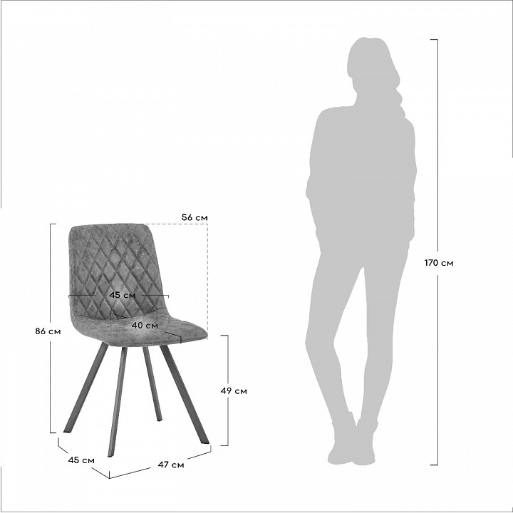Дополнительные параметры: высота от пола до сиденья — 490 мм, глубина сиденья — 400 мм, ширина сиденья — 450 мм