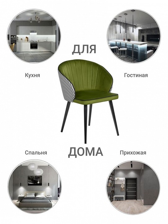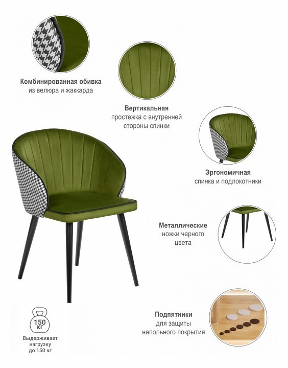Цвет обивки: зеленый, черно-белый рисунок гусиная лапка