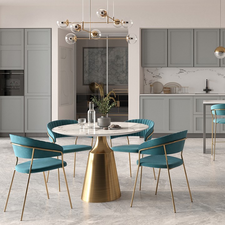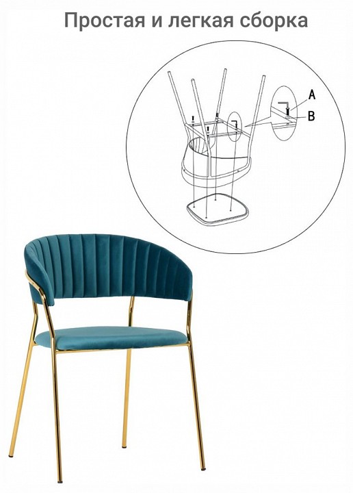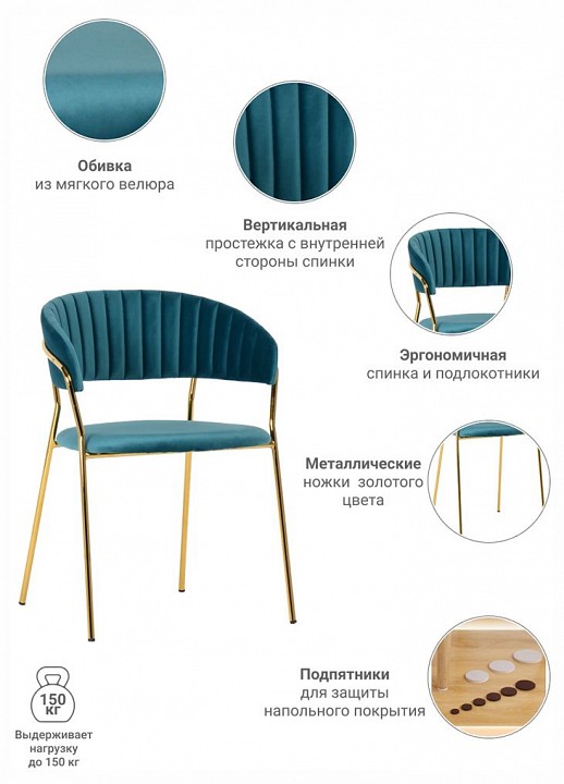 Мягкие спинка и сидение, оригинальный каркас и опоры с декоративным эффектом технологии золочения хромированных деталей.