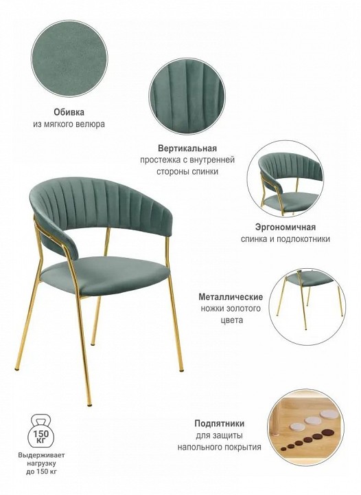 Дополнительное описание: Мягкие спинка и сидение, оригинальный каркас и опоры с декоративным эффектом технологии золочения хромированных деталей.