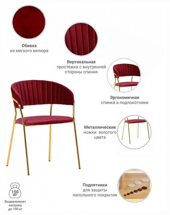 Стул Turin винный с золотыми ножками сочетает в себе изящные плавные линии и лаконичность. Оттенок обивки цвета идеально сочетается с хромированным блеском тонких стальных ножек. Легкая, но прочная конструкция способна выдерживать вес до 150 килограммов. Стильный дизайн, удобство и соответствие всем актуальным требованиям выделяют этот стул из ряда подобных и позволяют ему занять свое место практически в любом современном интерьере.