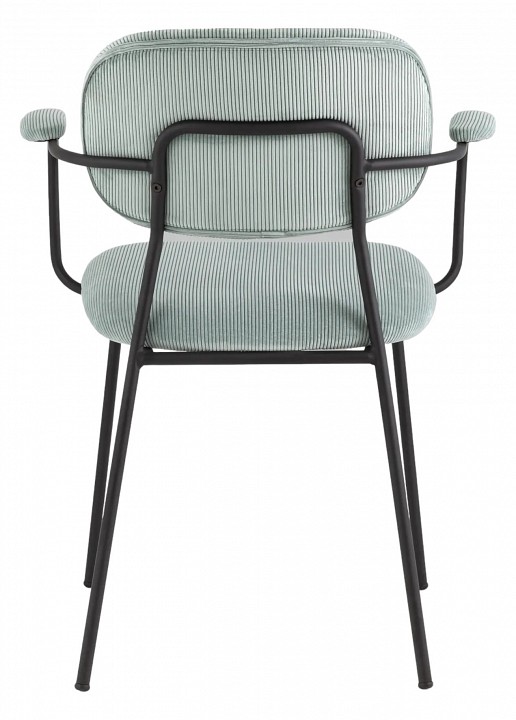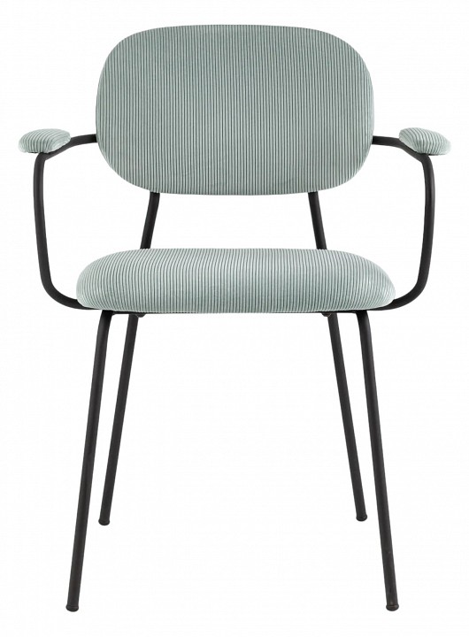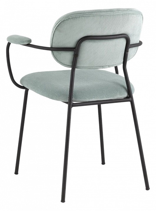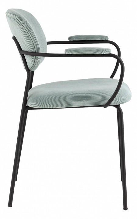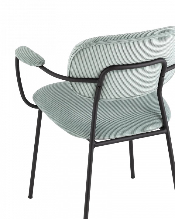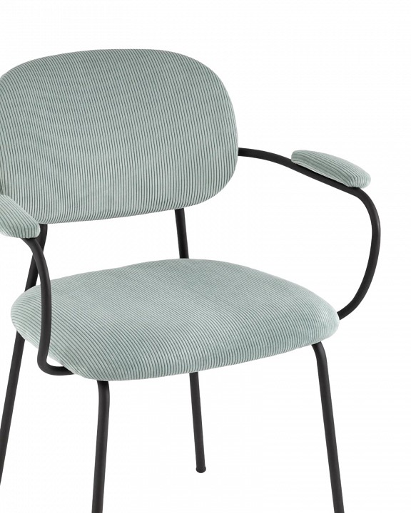 Современный обеденный стул с подлокотниками и металлическими ножками. Обивка выполнена из мягкого велюра. Металлический каркас черного цвета огибает спинку и плавно переходит из подлокотников в ножки. Широкое сиденье обеспечивает удобную посадку и уют. На подлокотниках для дополнительного комфорта предусмотрены мягкие накладки.
