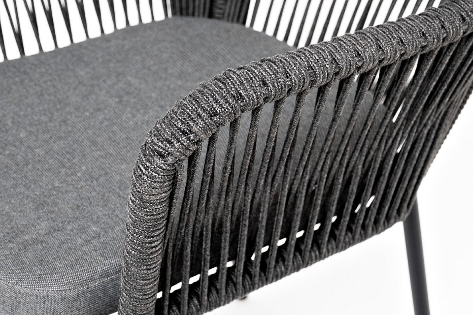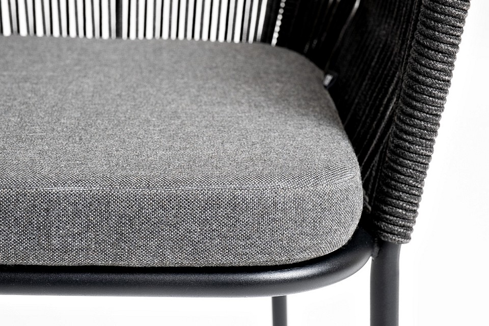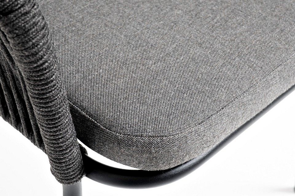 Дополнительные параметры: глубина сиденья — 500 мм, подушки выполнены из 100% водоотталкивающего полиэстера плотностью 300 гр/м2, фактура покрытия каркаса — муар, вид роупа — круглый
