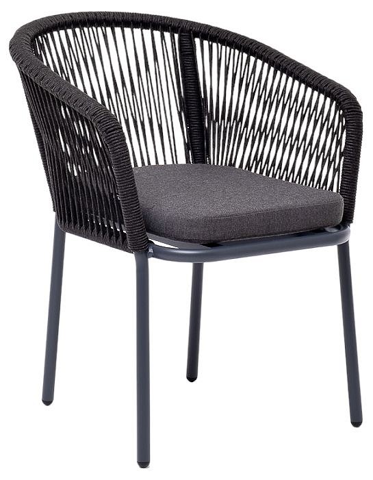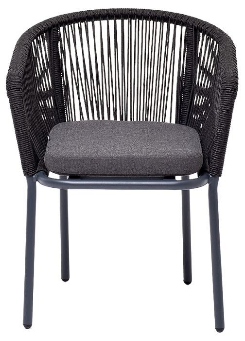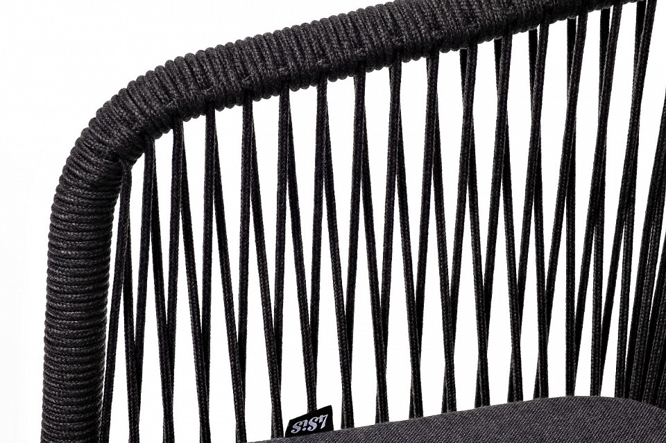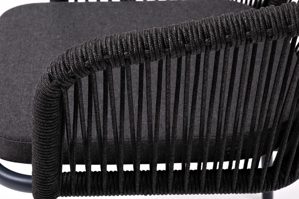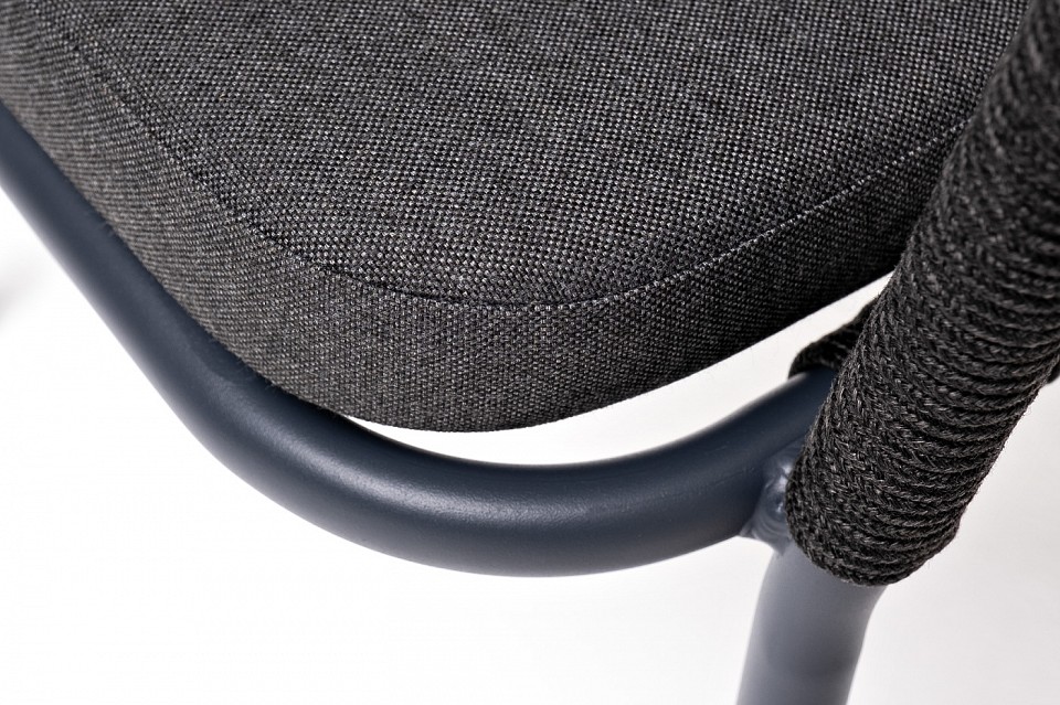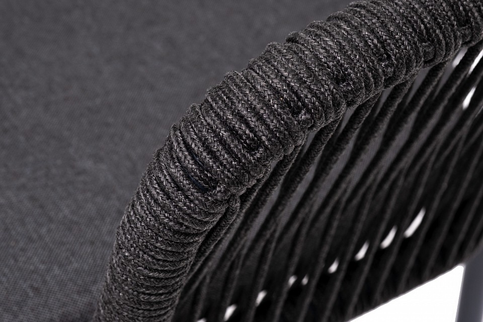 Стул ‘Марсель’ предназначен для организации обеденной зоны или зону лаунж. Выполнен из алюминиевого каркаса темно-серого (RAL7024) цвета. Оплетка — современный материал ‘роуп’, которым каркас оплетался вручную. Роуп — это эластичные синтетические ленты, изготовленные из высокопрочных полиэфирных волокон. Цвет оплетки — темно-серый. В комплекте одна подушка с влагоотталкивающей пропиткой. Чехол темно-серого цвета съемный, можно стирать в стиральной машине с использованием порошков.