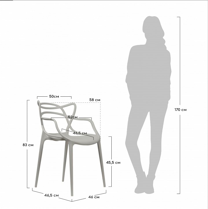 Компоненты, входящие в комплект: 2 стула — 520x580x830 мм