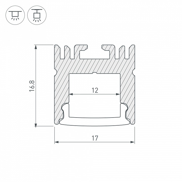 Дополнительные параметры: профиль анодированный алюминий ARH-LINE-1716-2000 ANOD, для лент шириной до 12 мм