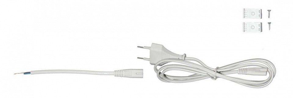 Компоненты, входящие в комплект: провод электропитания с вилкой без заземления, коннектор, заглушка, крепежи