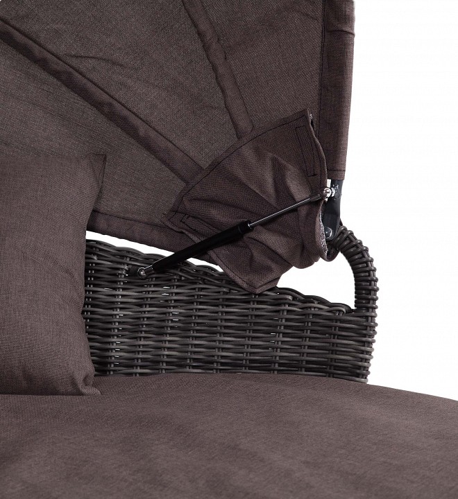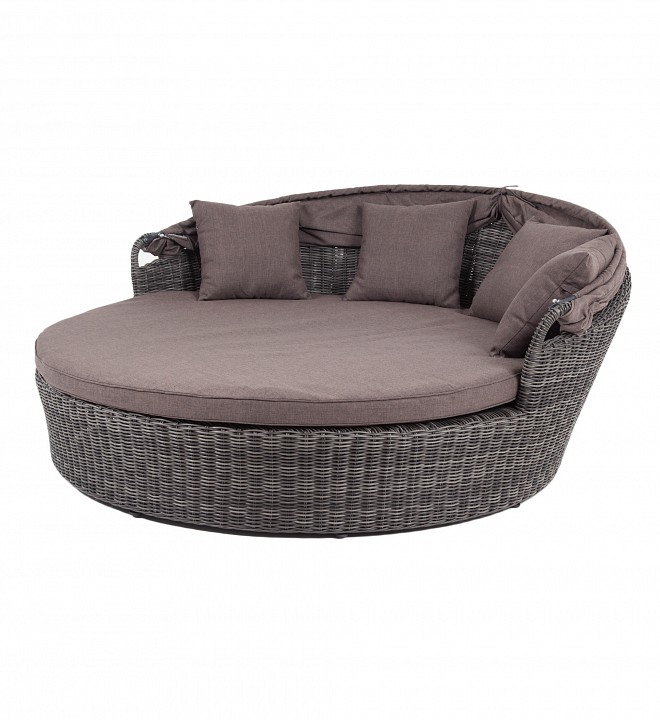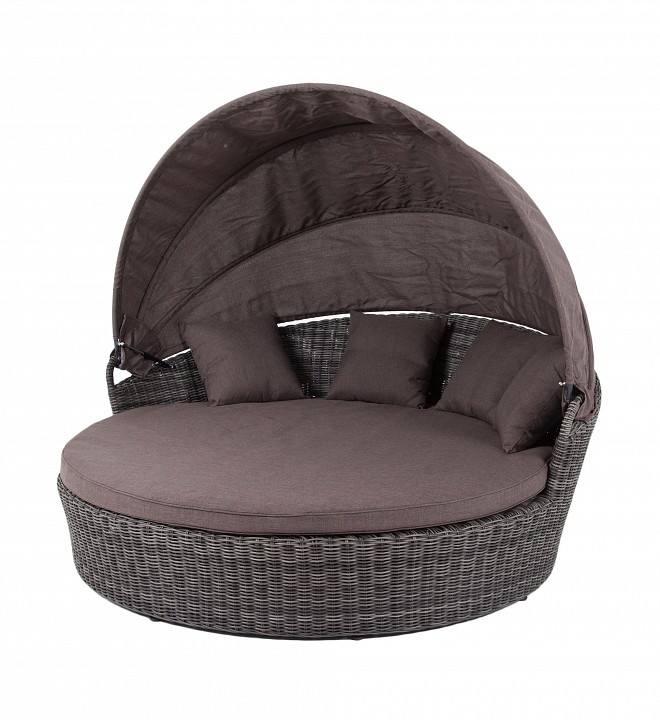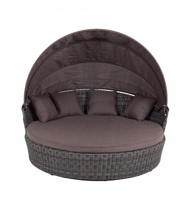 Стильяно кровать круглая, в комплекте с матрасом и подушками, откидывающийся козырек, алюминиевый каркас, искусственный ротанг.