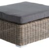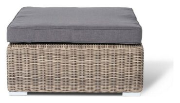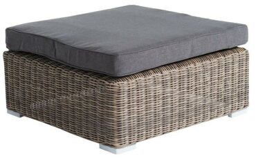 Круглое плетение. В солнечных лучах плетение приобретает более светлый и яркий оттенок. Подушки выполнены из водостойкой полиэфирной ткани для защиты мебели от дождя и солнца. Съемный чехол серого цвета