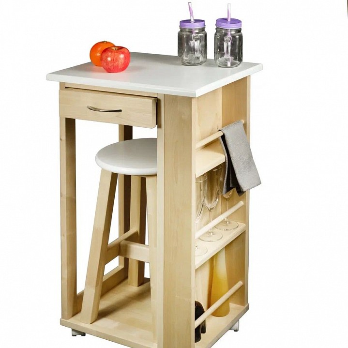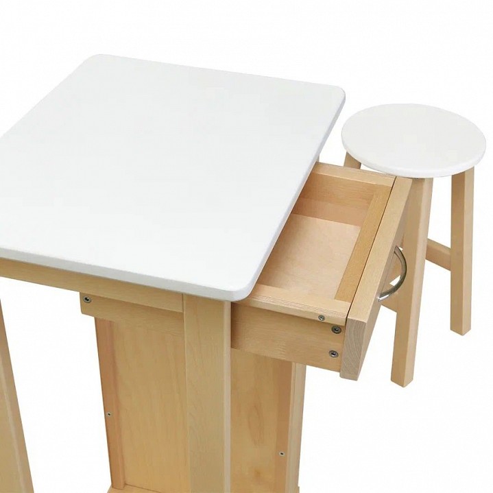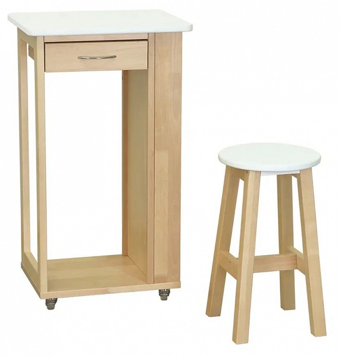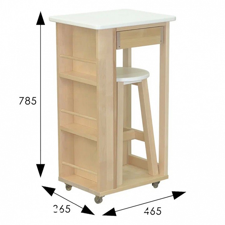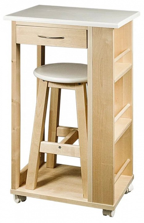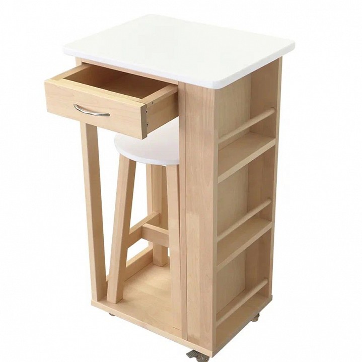 Компоненты, входящие в комплект: колесики, табурет, 1 ящик, 3 полки