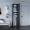 Дополнительные параметры: дверь может быть установлена как с правым, так и с левым открыванием, крепится к стене, материал — ДСП, цвет — серый