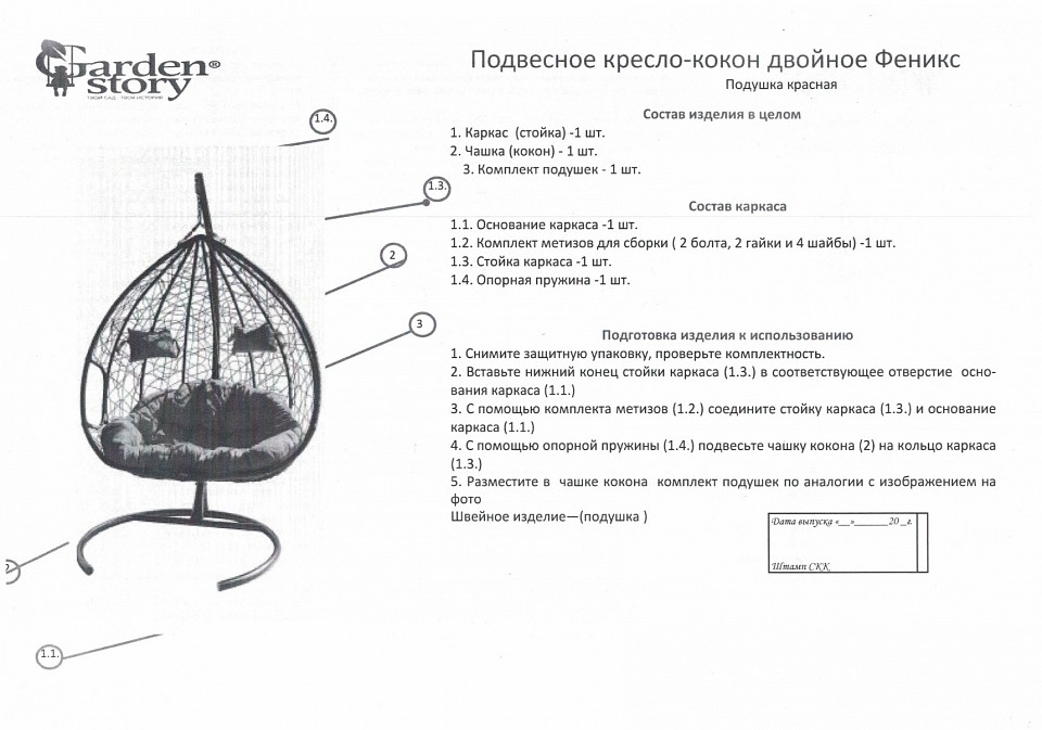 Дополнительные параметры: диаметр трубы: 50 мм, размер корзины: 1300х750х1250 мм, размер стойки: 50х60х1950 мм, размер основания: 1100х1100х50 мм, тип подвеса: металлическая цепь, требуется сборка
