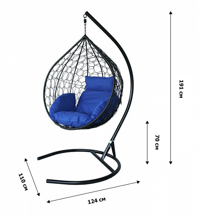 Дополнительные параметры: труба — O42, толщина мягкого элемента — 150, тип подвеса — металлическая цепь , толщина металла — 3, использование на открытом воздухе — да, от пола до сиденья 70 см, условия хранения — не ниже +2С, относительная влажность воздуха 40% — 75%