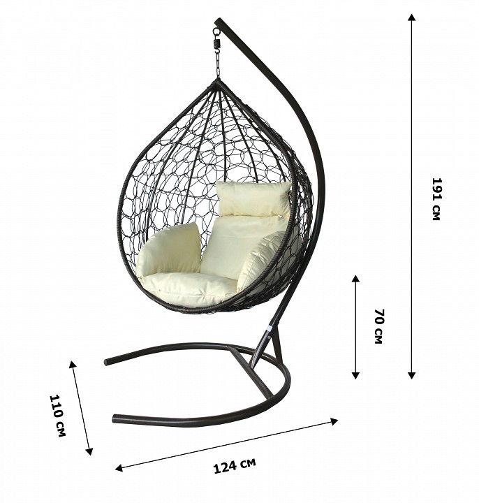 Дополнительные параметры: труба — O42, толщина мягкого элемента — 150, тип подвеса — металлическая цепь , толщина металла — 3, использование на открытом воздухе — да, от пола до сиденья 70 см, условия хранения — не ниже +2С, относительная влажность воздуха 40% — 75%
