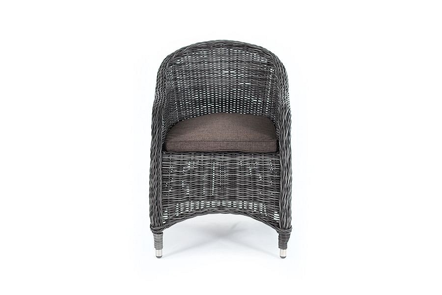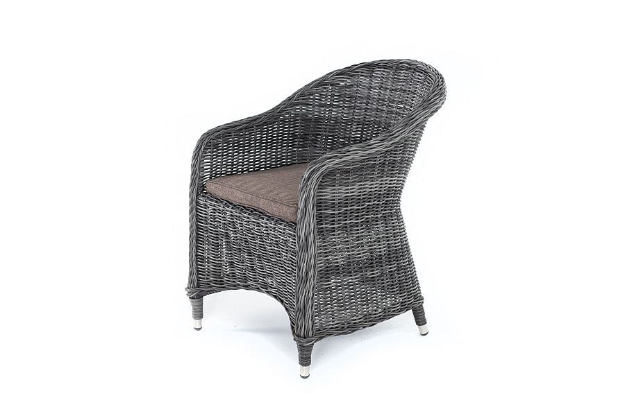 Кресло из искусственного ротанга ‘Равенна’ обладает крепким алюминиевым каркасом, который вручную обвит ротангом графитового оттенка. Сиденье располагает комплектной подушкой из 100% полиэстера, пропитанного специальным влагоотталкивающим составом.