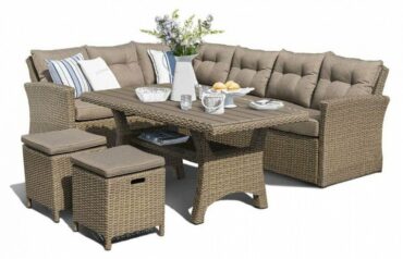Компоненты, входящие в комплект: прямая секция с подушками — 1690х650х730 мм прямая секция с подушками — 1790х650х730 мм стол — 1440х740×660 мм угловая секция с подушками — 2450x1700x650x740 мм мм 2 пуфа с подушками — 400x400x390 мм