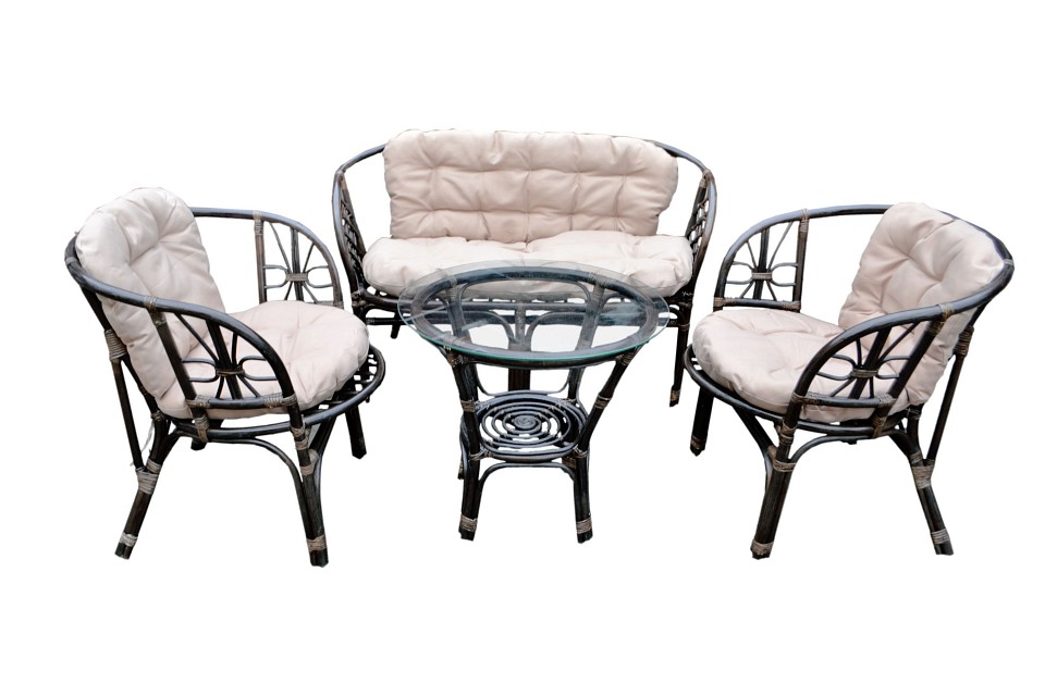 Компоненты, входящие в комплект: диван — 1120х650х730 мм стол журнальный — 600х550 мм 2 кресла — 680х630х730 мм