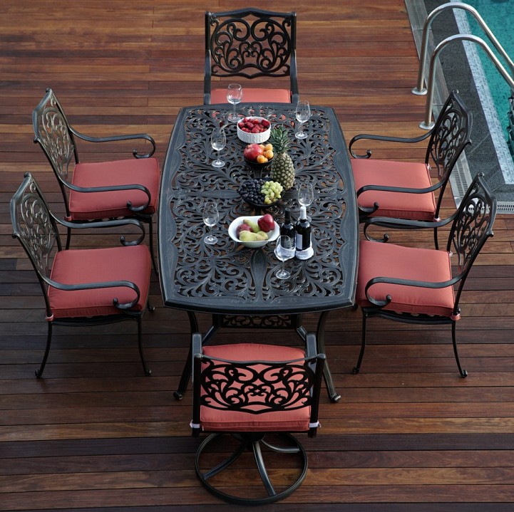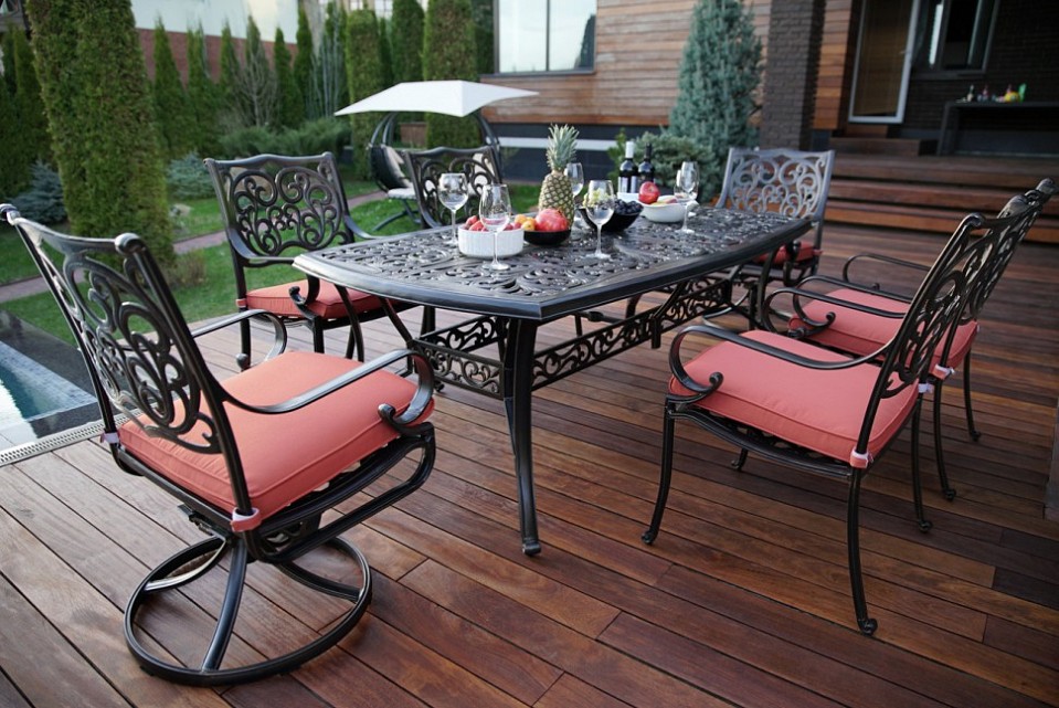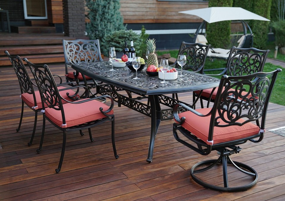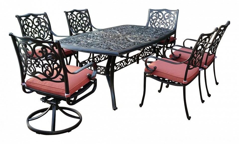 Компоненты, входящие в комплект: стол обеденный — 2140x1120x730 мм 6 кресел — 600x705x950 мм