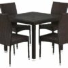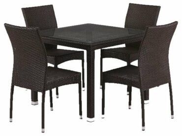 Компоненты, входящие в комплект: стол — 900х900×740 мм 4 стула с подушками — 450x560x920 мм