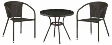 Компоненты, входящие в комплект: стол — 720х720×740 мм 2 кресла — 580x600x780 мм