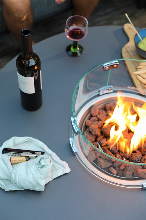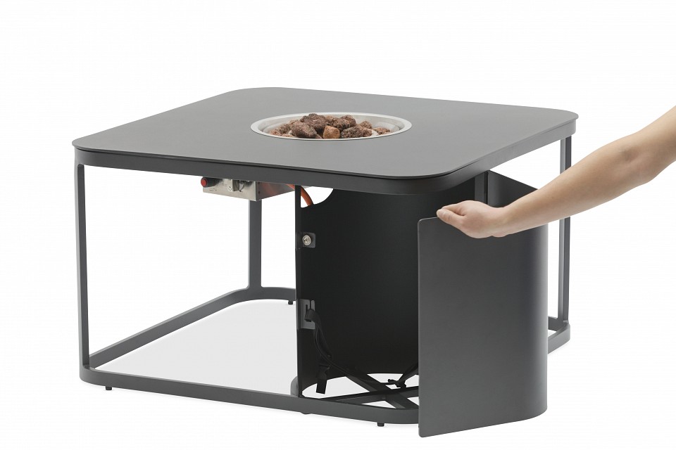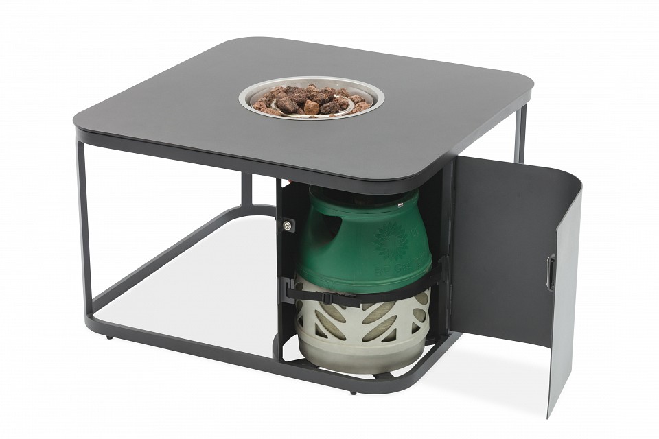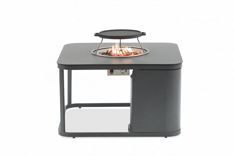 Столы Orebro обеспечивают высококачественную функцию камина с современным дизайном стола. Эти каминные столы создают теплую атмосферу на любом открытом пространстве и позволяют хранить стандартный баллон с пропаном непосредственно в основании стола. Алюминиевая рама с алюминиевым верхом. Работает со стандартными газовыми баллонами, полностью сертифицированными по безопасности в соответствии с правилами техники безопасности ЕС. Защита от ветра из закаленного стекла. Ручное зажигание, со свечой зажигания под столешницей. Отделение для газового баллона. Гриль для барбекю на раме из нержавеющей стали.