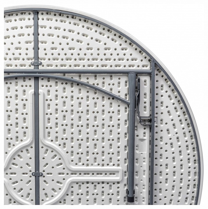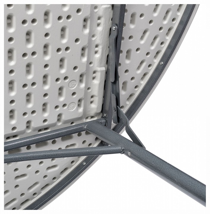Стол круглый, 180×74 см. Для каркаса используется стальная труба особой прочности 32×1 мм, а столешница, толщиной 5 см, выполнена из 100% не переработанного полиэтилена HDPE (полиэтилен высокой плотности). Считается одним из более безопасных видов пластика. HDPE пластик выдерживает высокие нагрузки, не трескается при ударной нагрузке, эластичен в диапазоне температур от –70 до +100 °С. Устойчив к щелочам, кислотам и другим неорганическим агрессивным жидкостям, растительным и минеральным маслам. Упаковка — белый картон, по 1 шт. в коробке.