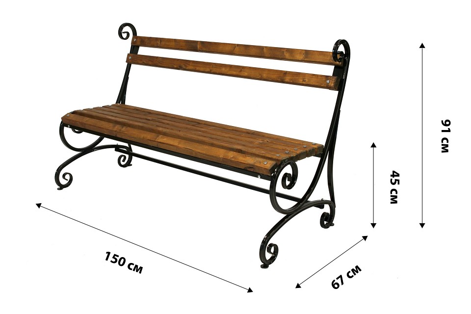 Дополнительные параметры: труба — O20, максимальное количество единиц в штабеле — 5, использование на открытом воздухе — да, допускается разница досок 2-3 мм, проявление смолы, доска 1,45 м, длина общая 1,50 м, от пола до сиденья 45 см, условия хранения — сухое проветриваемое помещение