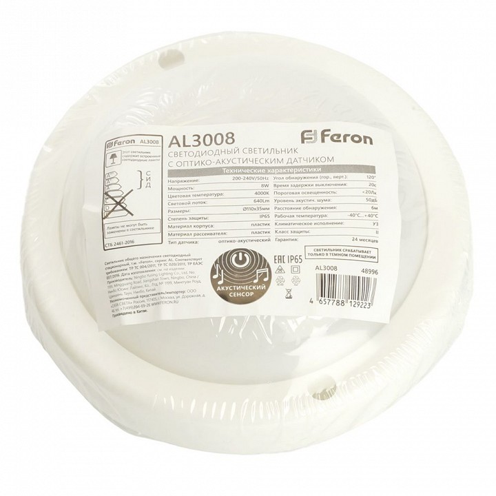Наличие выключателя, диммера или пульта ДУ: датчик звука